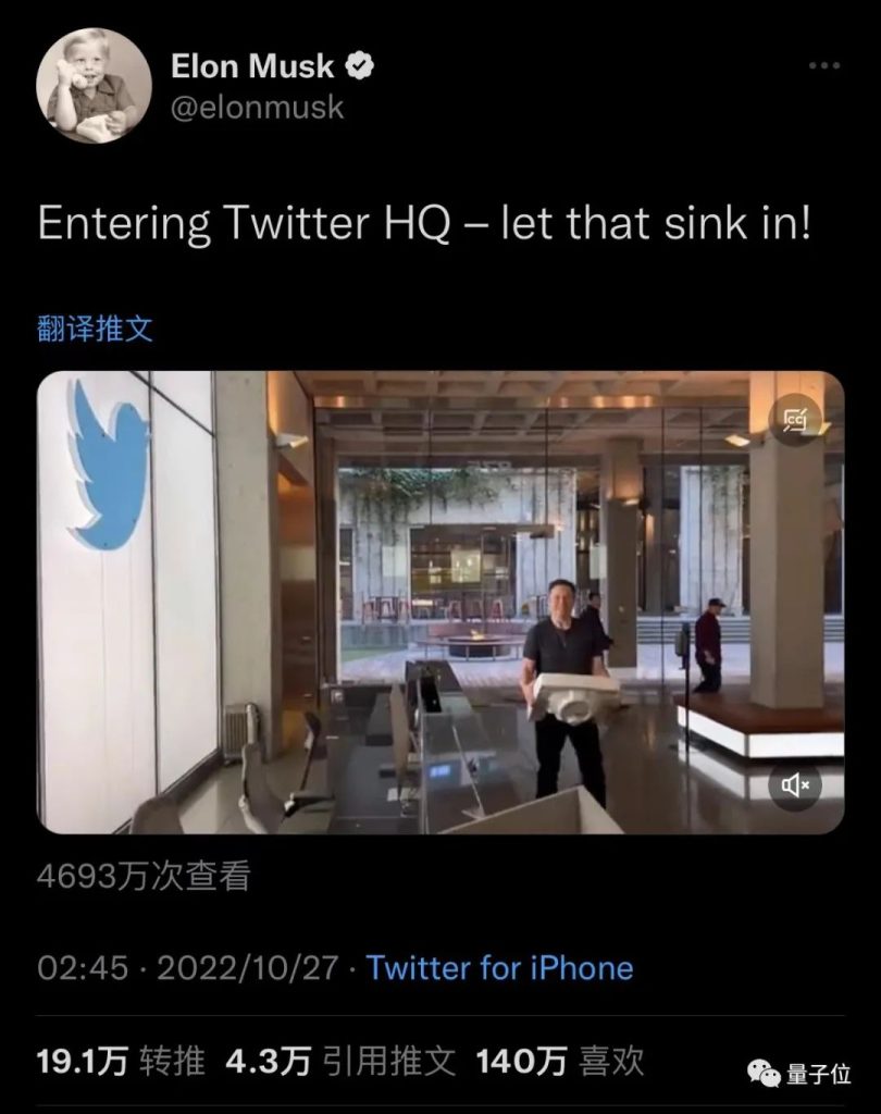 (马斯克抱着水池入主推特,)说的是要让自己sink in,没想到是要把他认为冗余的员工们wash away(狗头)。