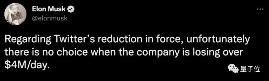 最新推文中,他还表示,裁员,在推特每天损失超过400万美元的情况下,是没有办法的事。