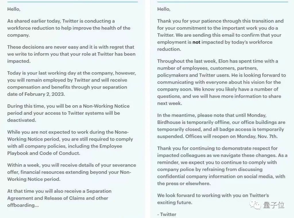 然而,就在当地时间11月3日周四傍晚,推特员工们还是收到了这样一封全员邮件: