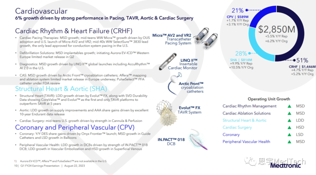 心血管组合包括心律与心力衰竭(CRHF)、结构性心脏与主动脉(SHA)和冠状动脉与外周血管(CPV)部门。
