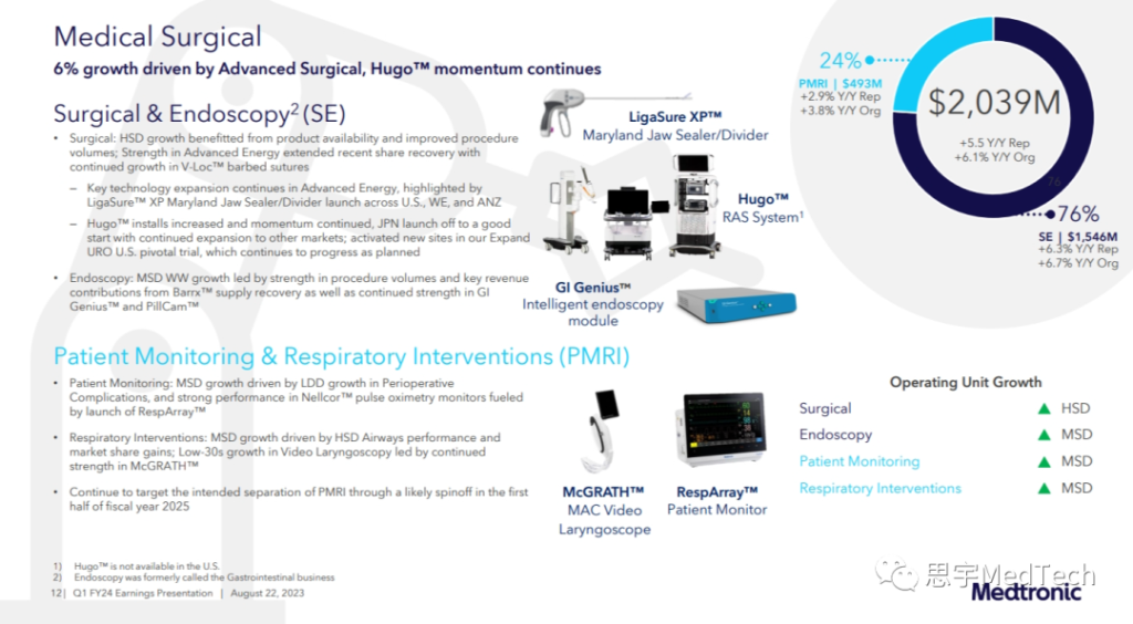 医疗外科组合由两个部门组成:外科与内窥镜(SE)和患者监测与呼吸干预(PMRI)。