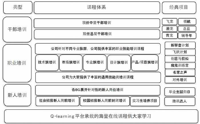Training and development building for different levels of staff, there is a choice of training: grassroots, middle and senior cadres reserve training, Tencent also has their own plans.
