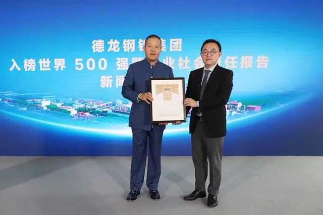 德龙钢铁集团董事长丁立国接受世界500强证书