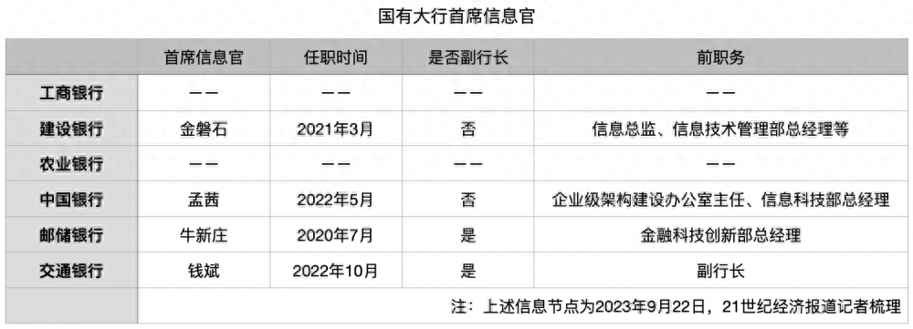 目前,商业银行在首席信息官方面的设立情况如何,21世纪经济报道记者进行一个简单梳理: