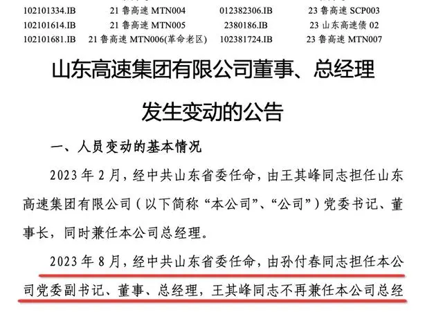 【动向】孙付春履新山东高速集团党委副书记、董事、总经理