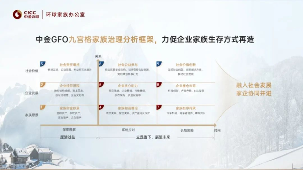 为了更清晰地协助客户,厘清一个家族从哪里来、到哪里去,以及在这个过程中会遇到哪些必然的问题,GFO原创了一套九宫格家族治理框架。