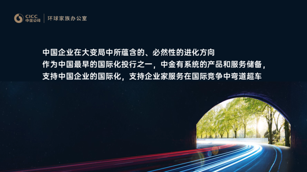Indeed, we believe that where the world needs to develop in the future, there will be Chinese entrepreneurs. Where there are Chinese entrepreneurs, there is a need for CICC GFO’s full range of enabling services. As one of the earliest international investment banks in China, CICC already has a systematic reserve of products and services, actively supports the internationalization of Chinese enterprises, and also supports entrepreneurs to overtake in international competition. We’re… ready.