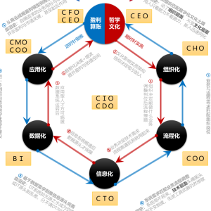 接下来我们就由表及里来看转型到底包括哪些,哪些是CIO力所能及的,哪些是需要其他部门岗位配合的,最终环环相扣拼成一个完整闭环,将各路CXO排兵布阵于闭环上,而不是毫无章法一起往前冲打乱仗,方可完成转型大业。每一个点怎么做不难找到答案,但拼凑起的豪华阵容为什么仍然打败仗?CXO常有,而把CXO这些珍珠串起来的线不常有,这条线就是闭环。