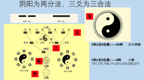 那么,按阴阳分,只是二进制,意思不大,所以要用三爻,是三合法,是“转”的方法。