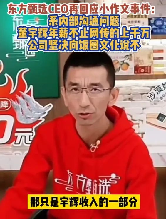 Yu Minhong clarified that the Eastern selection does not have a food circle culture, but also resolutely resist the food circle culture, and called on everyone to speak rationally.