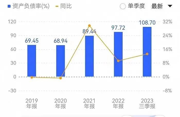 与此同时,人人乐的门店数量持续缩水。截止2022年底,人人乐门店数量113家,较2020年的149家减少36家,全年未开新店,而随着负债的走高,人人乐的现金流同样紧张,截至2023年三季度末,人人乐资产负债率达108.70%,已处于资不抵债的境地。