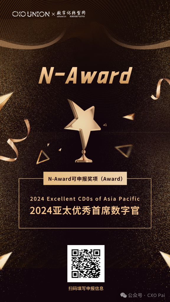 2024N-Award人物类奖项正在申报中,奖项包含华东/亚太优秀首席信息官/数字官,亚太数字化转型杰出人物,全球治理创新人物…