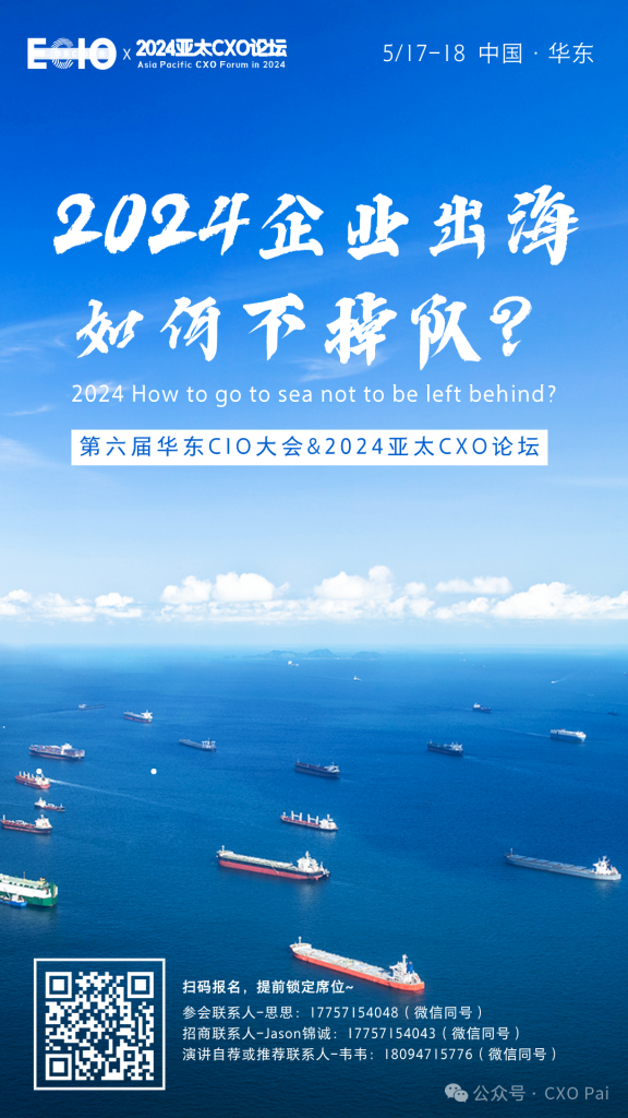 第六届华东CIO大会&2024亚太CXO论坛将于5月17-18日隆重召开,2024企业出海如何不掉队?期待在这场思想盛宴上您能够得到您内心疑问的解答!
