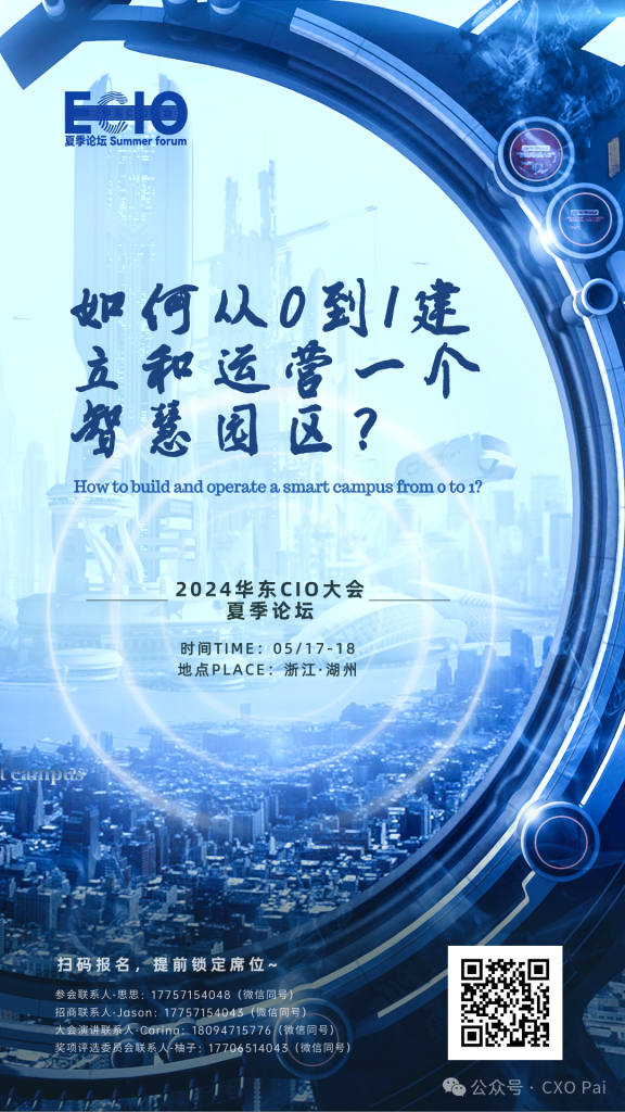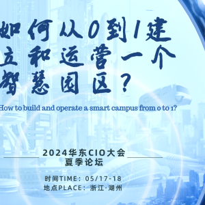 2024华东CIO大会夏季论坛将于5月17-18日隆重召开。如何从0到1建立和运营一个智慧园区?期待在这场思想盛宴上您能够得到更多的解答!