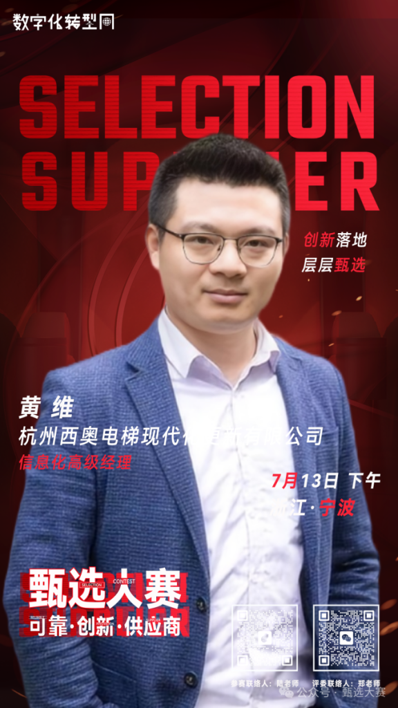 甄选大赛评委:杭州西奥电梯现代化更新有限公司信息化高级经理黄维-CXO联盟(cxounion.cn)