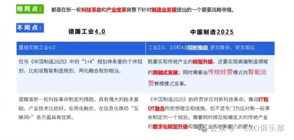 关于数字化工厂的一个发展做了一个对比,德国工业4.0和中国制造2025他们的一个相同点和不同点,然后相同点的话都是在新一轮科技革命和产业革命的一个背景下共同去发展的一个措施。他们的不同点是德国工业4.0是一步到位的,是直接达到了一个工业4.0,中国智能制造是一步一步去发展的,包括工业2.0 3.0 4.0,同时推动我们中国制造2025,首先我们的转型升级需要兼容我们现在的在传统行业的基础之上,去慢慢的去寻找我们自己的一个转型升级和发展。