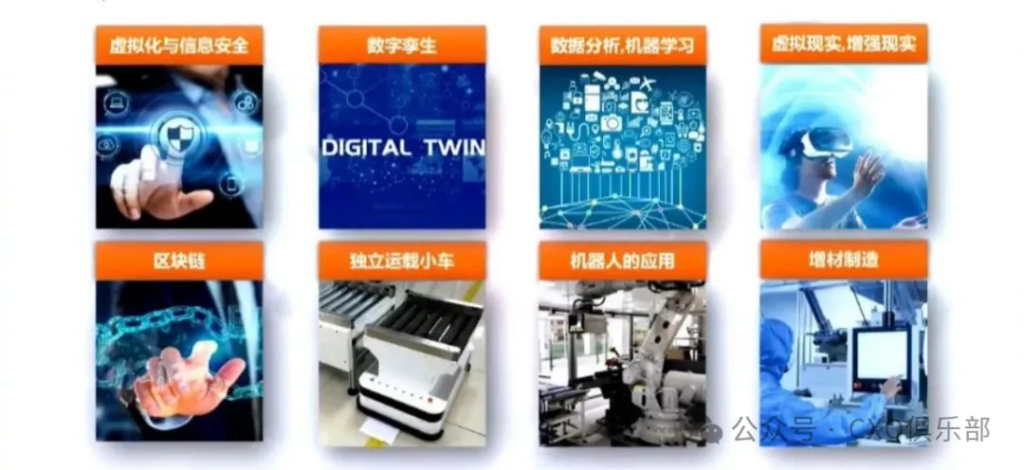第一个就是虚拟化与信息安全,然后这一块也是非常重要的,那么再一个就是数字孪生,最近这几年的技术相对来说也是比较成熟的,就是一个虚拟化的数字化工厂。再就是一些数据分析和机器学习这一块主要是用于比方说检测,虚拟现实,增强现实,区块链,还有一些的小车机器人的应用,还有一些增材制造这些。
