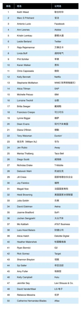 全球50位最具影响力CMO全榜单