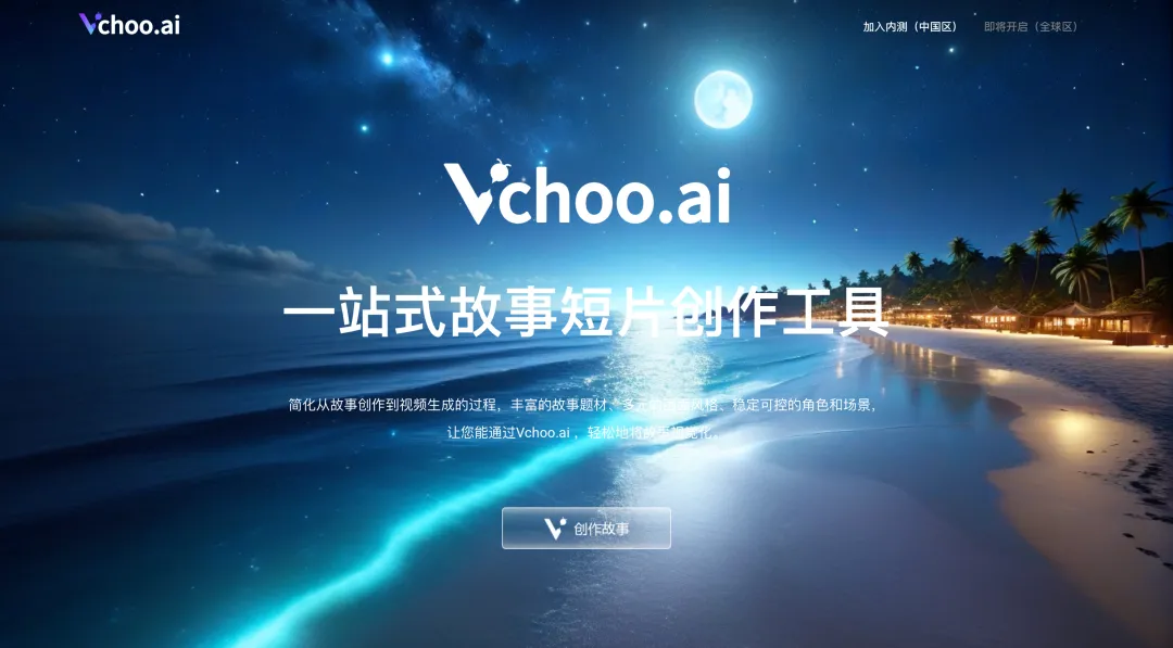 在这股浪潮中,国内首个协助影视创作全流程的一站式AI工具Vchoo.ai也脱颖而出。用户只需输入一句话,Vchoo.ai便能为他们快速生成完整、有趣的故事内容,并按照用户喜好的风格合成故事视频。