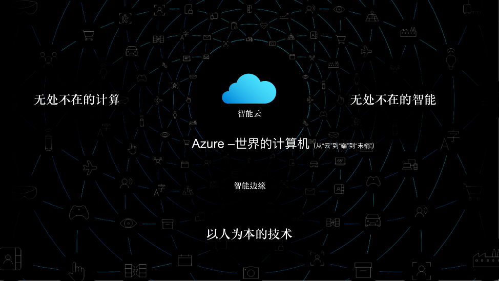 操作系统的核心就是管理计算、存储和网络资源与提供人机交互能力,再结合Mark Weiser 的前瞻远景,大家没有必要过于纠结云计算与边缘计算或者集中式计算与分布式计算有哪些区别,要抓住计算的本质,操作系统只要还是在冯诺·伊曼的框架下,管理的就是计算、存储、网络,而微软搭建的 Azure 云计算平台,无论多么复杂,最终可以抽象为一台计算机,为人类提供“无处不在的计算“,实现”无处不在的智能“,所以我们把它称为“世界的计算机”。