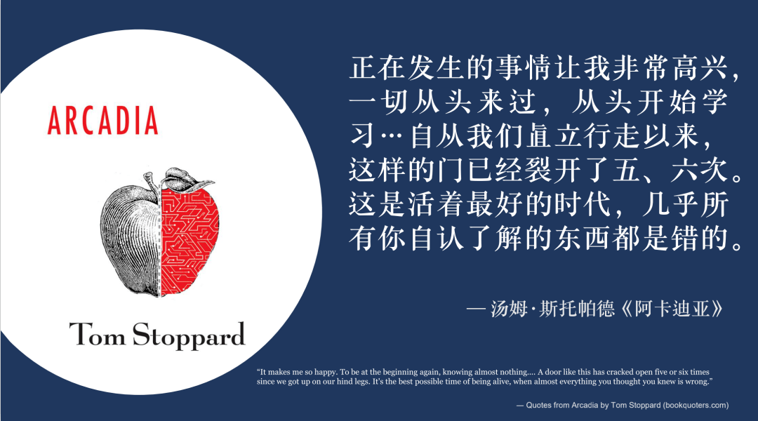 通常来说搞IT的人做事情都要先有一个约束前提,所以开始分享之前先把时代特征做一个约束。下图这段话源自戏曲《阿卡迪亚》,是我特别喜欢的一句话,无独有偶,这段话也放在了现在很流行的书《主权个人》的封面上。