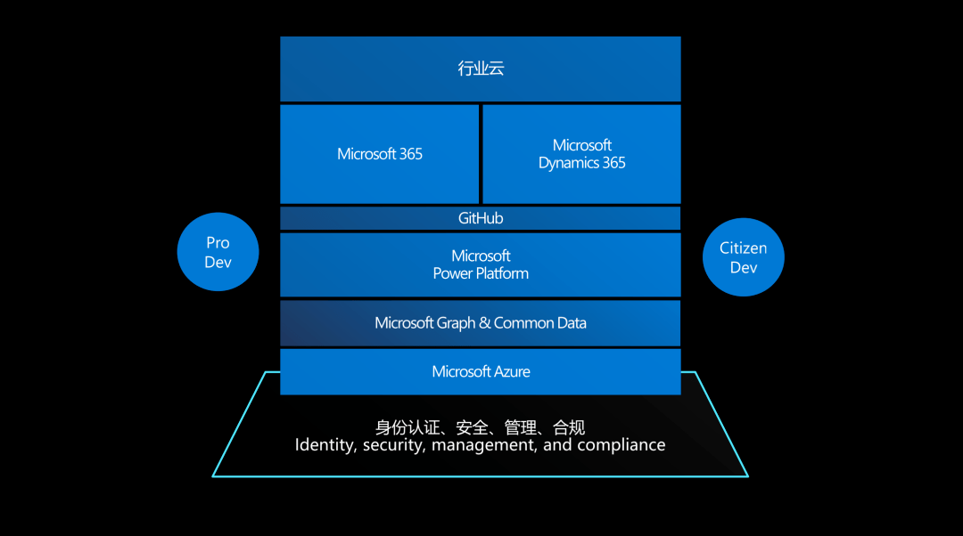 下图是以微软为例搭建的云智能框架,该框架从底层最基本的身份管理、合规、安全等到云计算、到开发,再到生产效率提高、到行业应用等。虽然以微软的框架举例,但这是一个通用性框架,把这个框架学透了,再结合自身的情况,可以变化出各种适应不同需求的变种。