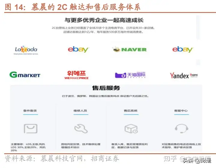 2B/2b 业务:慕晨在海外拥有由代理商、分销商、零售商、独立站构成的线下销售网络体系,全球累计分销客户达 3000 家以上,具有强大的规模销售能力。其中,2B 是海外大型贸易商,将石头的扫地机器人产品放入海外大 型商场、超市,及其他自有分销渠道销售,快速占据海外主流商品市场,带来良好品牌曝光度;2b 是指小型终 端贸易店,包括一些夫妻店(小门店、个体店)、线上独立站(当地个人开的网店)等等,虽然个体店销量有限,但 有助于实现扫地机器人产品的广覆盖;