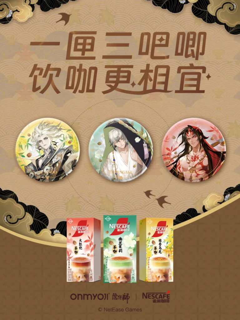 雀巢咖啡洞察到年轻人对二次元文化的热爱,与《阴阳师》手游人气角色阿修罗、不见岳、须佐之男三位优胜式神展开梦幻联动,在雀巢咖啡特调系列的馫香之中融入《阴阳师》手游热门角色的独特魅力,为消费者带来关于味觉与想象的奇妙体验。同时,雀巢咖啡还与《阴阳师》手游精心筹备了联名“谷子”周边,包括联名徽章、联名镭射票、联名明信片等6款限定周边,在有效满足Z世代探索精神和个性化需求之外,彰显咖啡、文化与生活的内在关联。