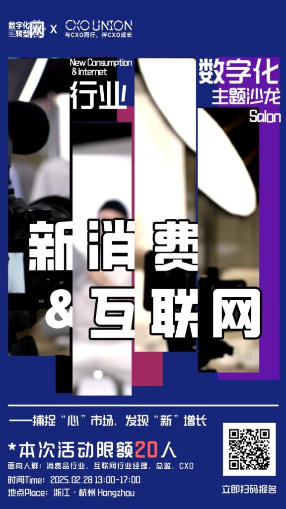 2月底,数字化转型网(专业造就领导者)、CXO UNION(与CXO同行,伴CXO成长)我们将组织新消费&互联网行业数字化主题沙龙,在这里,我们将一同探讨如何通过大数据、人工智能等精准洞察消费者内心?如何从产品研发、营销推广到服务体验,全链路打造贴合消费者心意的新消费场景?如何借助云计算、区块链等前沿技术,图片增长瓶颈,挖掘全新的业务增长点?CXO UNION-CXO联盟(cxounion.cn)