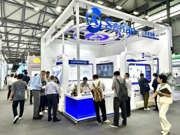 上海2025年9月26日 /美通社/ — 9月24日至26日,作为化合物半导体行业的先进企业,三安精彩亮相电力电子盛会PCIM Asia上海展。在N5馆-B50展台,三安集中展示了涵盖碳化硅全产业链的核心产品与解决方案,包括SiC MOSFET/SBD、衬底、外延片、车规级模块等,覆盖新能源汽车、光伏储能、工业控制等关键应用场景。展会现场人流如织,三安技术团队与客户深入交流,共同探讨如何通过高性能碳化硅方案提升能效、优化系统尺寸与总成本。