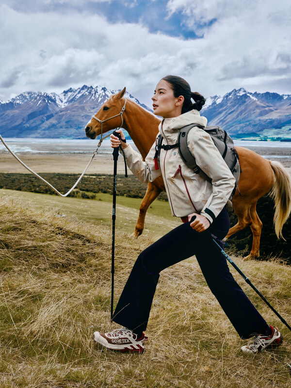 刘诗诗的探店之路,始于HIKE登山徒步区入口处的「驭马迎风」新春限定系列。该系列灵感深植于云南茶马古道,巧妙呼应马年昂扬向上的意象,汲取山河色韵、茶染肌理与民族图腾,礼赞古道先行者所承载的人文精神。该系列产品涵盖从冲锋衣、软壳夹克、抓绒马甲、徒步裤到专业鞋履等全品类,致力于为新春的多元场景提供完整穿搭方案。全系列产品于12月23日在深圳万象城KOLON KRAFT旗舰店与品牌官方小程序首发,并已于12月25日起在线下指定门店发售。