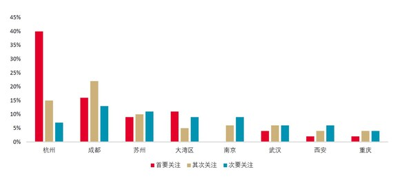 非一线城市投资机会关注度前八位(数据来源:戴德梁行)