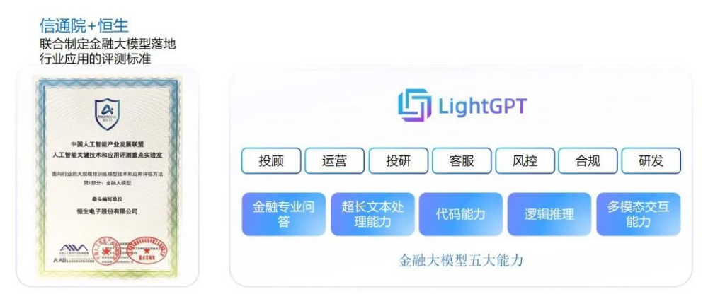 第一,选模型。我们和信通院一起发布了一个评测大模型在金融应用领域的标准,根据标准可以评测不同的模型在金融应用行业的合规性、决策质量表现情况如何等,同时发布了GPT金融行业大模型的第一个版本。