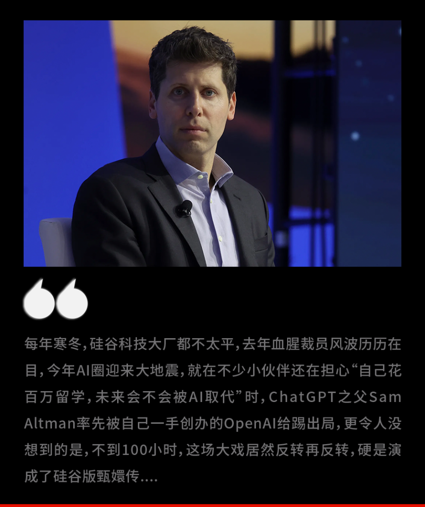 这种《我被我一手搭建的董事会开除了》、《“ChatGPT之父”加入AI失业大军》的drama戏码,无论对于OpenAI 还是整个科技行业,都是一个地震级别的消息。