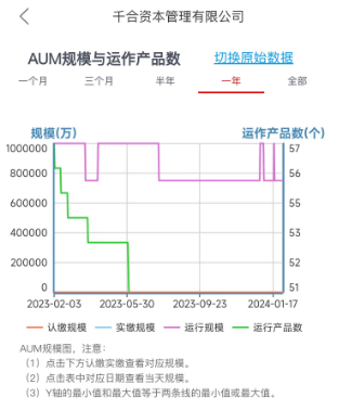 第三方监测平台数据显示,千合资本运行规模曾一度在去年12月末、今年1月初突破百亿规模,但从1月20日起,运行规模急剧下降,目前最新规模已降至75亿元。