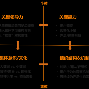 例如,我们做产品创新,在关键能力上肯定要做用户洞察,做数智化决策。同时,还需要运营侧不同策略的创新。这些都是关键能力。