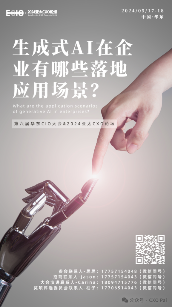 第六届华东CIO大会&2024亚太CXO论坛将于5月17-18日隆重召开,生成式AI在企业还有哪些落地应用场景?期待在这场思想盛宴上您能够得到更多的解答! CXO UNION-CXO联盟(cxounion.cn)