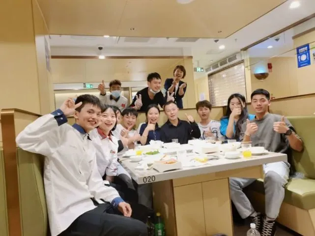 海底捞南昌一门店修整前员工聚餐,黑色西装为店经理黄慧娟。