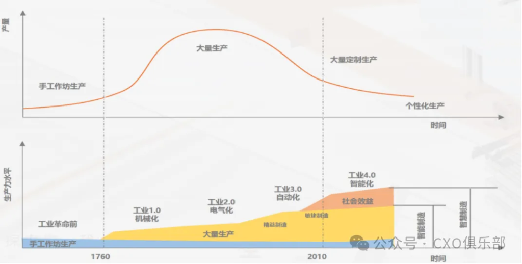 从智能工厂的角度来看,人类是机器人的主要创作报道者,为机器人提供了丰富的应用场景机会。当前,站在智能工厂变化的视角上,中国逐渐成为制造业的核心基地。然而,近年来,整个竞争环境发生了巨大变化。我们从事的低端制造难以再依靠人口红利和人力工程师的优势获得竞争力,这种价值变化给制造业带来了深刻的需求。图1是制造领域发展时间线,过去几十年中国经历了从手工作坊时代到工业革命以来的大规模生产阶段。从时间线可以看出,当前市场对自动化的需求非常高。