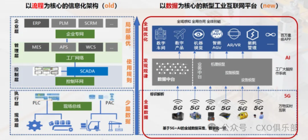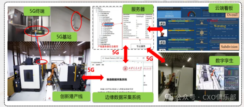 之前的架构更加注重以流程为核心,但现在更加注重以数据为核心。我们在西交大也实施了上述系统,如图12所示,通过相对数据化的连接和5G的连接方式,建立了整个工厂的数据连接看板,实现了数字孪生和机器人工厂技术,形成了数字化工程建设的样板。 CXO UNION-CXO联盟(cxounion.cn)