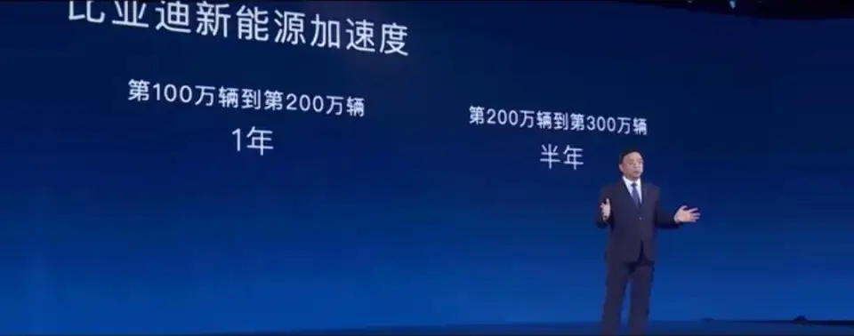 正如王传福曾经说过的:「任何新事物的替代都不是等比例的,而是先低再高。」同年,11月16日比亚迪第300万辆新能源汽车下线,成为中国第一家达成此成就的新能源车企。