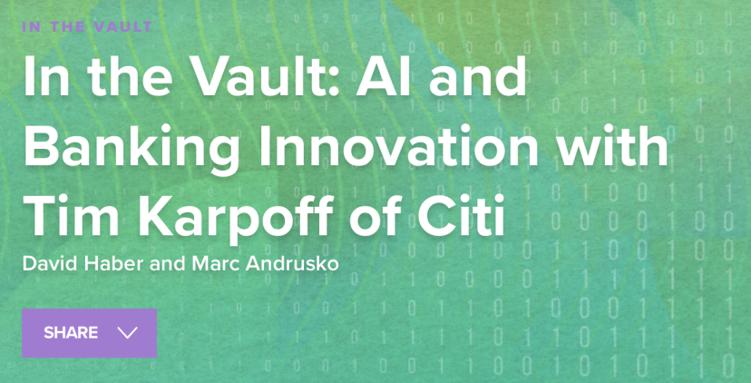 《“In the Vault”》是由a16z Fintech团队推出的新音频播客系列。在这一期节目中,a16z普通合伙人David Haber和金融科技合伙人Marc Andrusko与花旗全球战略负责人Tim Karpoff进行对话。Tim Karpoff指导银行的核心关注领域以及未来对新兴技术(如人工智能)的投资。对话涵盖了银行政策和监管的变化趋势、初创公司在与大型银行合作中扮演的日益重要的角色,以及Tim在金融服务领域人工智能采纳方面与主流观点的不同看法。