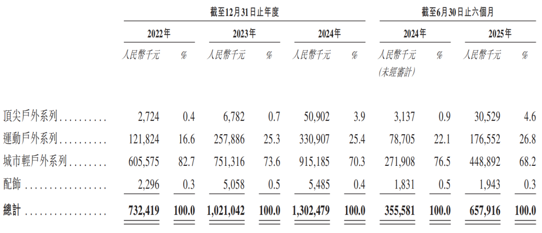 根据穿着场景不同,公司产品划分顶尖户外、运动户外与城市轻户外三大系列,建议零售价分别为999元至3299元、599元至2999元和699元至1799元,截至2025年6月共有687个SKU。