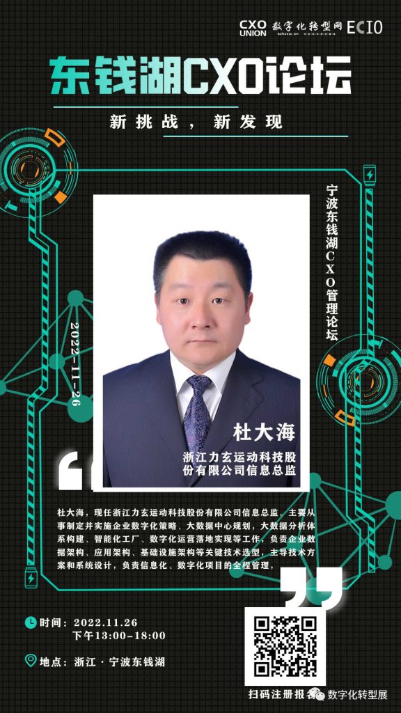Du Dahai is currently the Information Director of Zhejiang Lixuan Sports Technology Co., LTD. Mr. Du Dahai is mainly engaged in the formulation and implementation of enterprise digital strategy, big data center planning, big data analysis system construction, intelligent factory, digital operation implementation, etc. Mr. Du Dahai is responsible for the selection of key technologies such as enterprise data architecture, application architecture, infrastructure architecture, leading technical solutions and system design. Responsible for the whole process management of information and digital projects.
